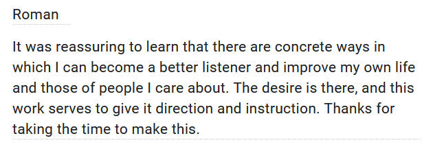 You join Mind to Mind- you're in the community and program for as long as you wish. Includes all kinds of older reworked stuff like the Active Listening Toolkit, the Conversation Workshop and more.